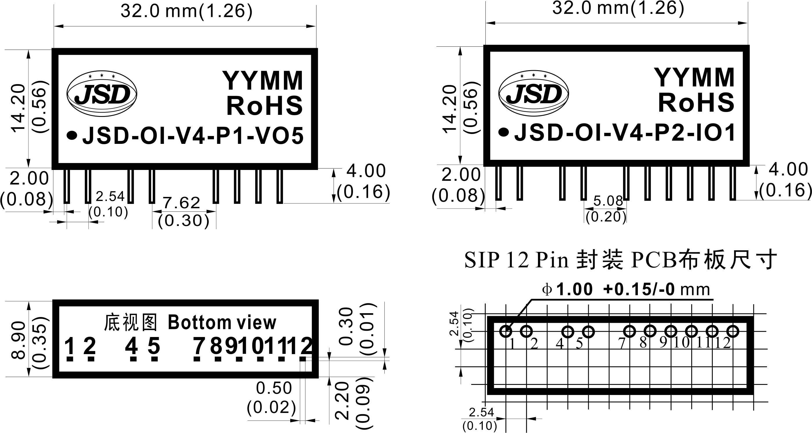 ● 低成本、小体积,SIP封装符合UL94-V0阻燃标准